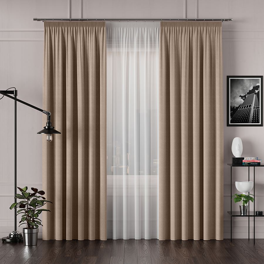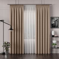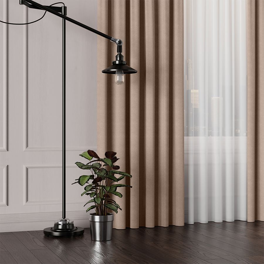 Naturaalse välimusega ühevärviline dekoratiivkangas, mis sobib hästi külgkardinateks.