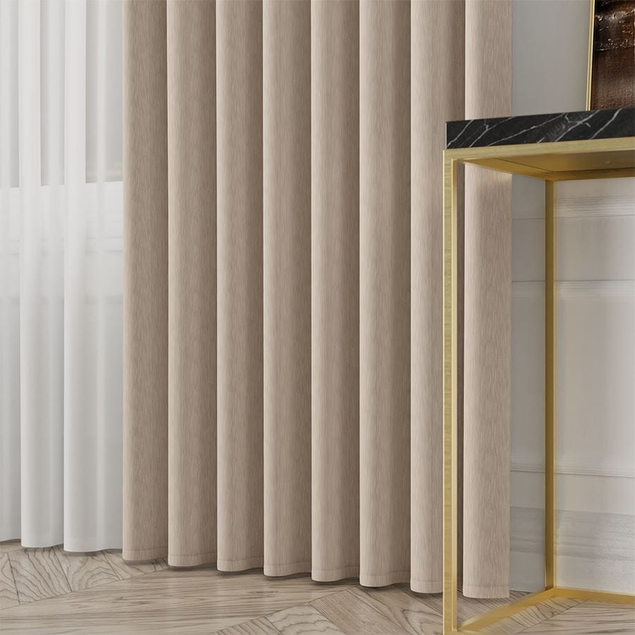 Naturaalse välimusega ühevärviline dekoratiivkangas, mis sobib hästi külgkardinateks.
