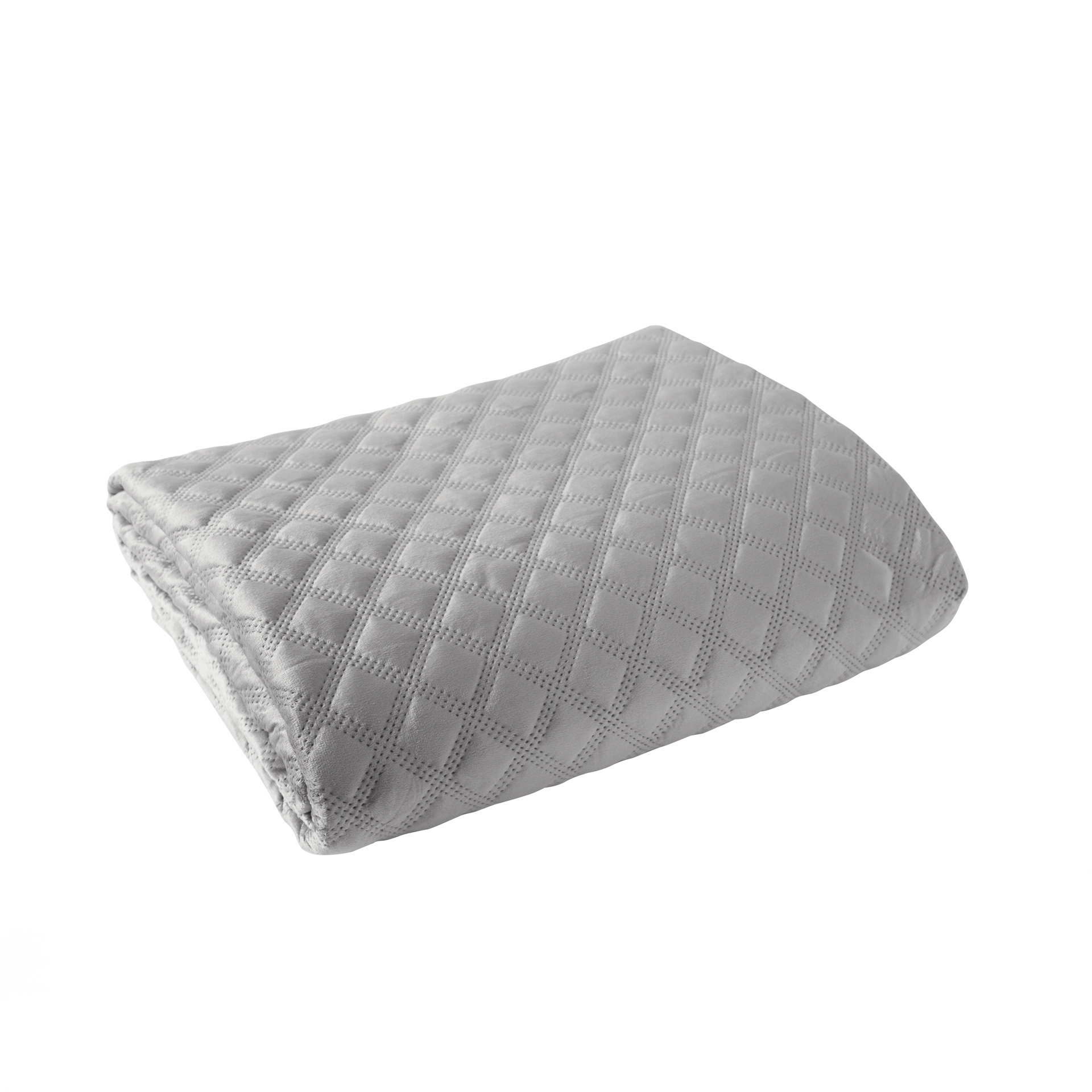 Dekoratiivne tepitud voodikate, geomeetrilise mustriga, valmistatud kuumpressimise tehnikas.