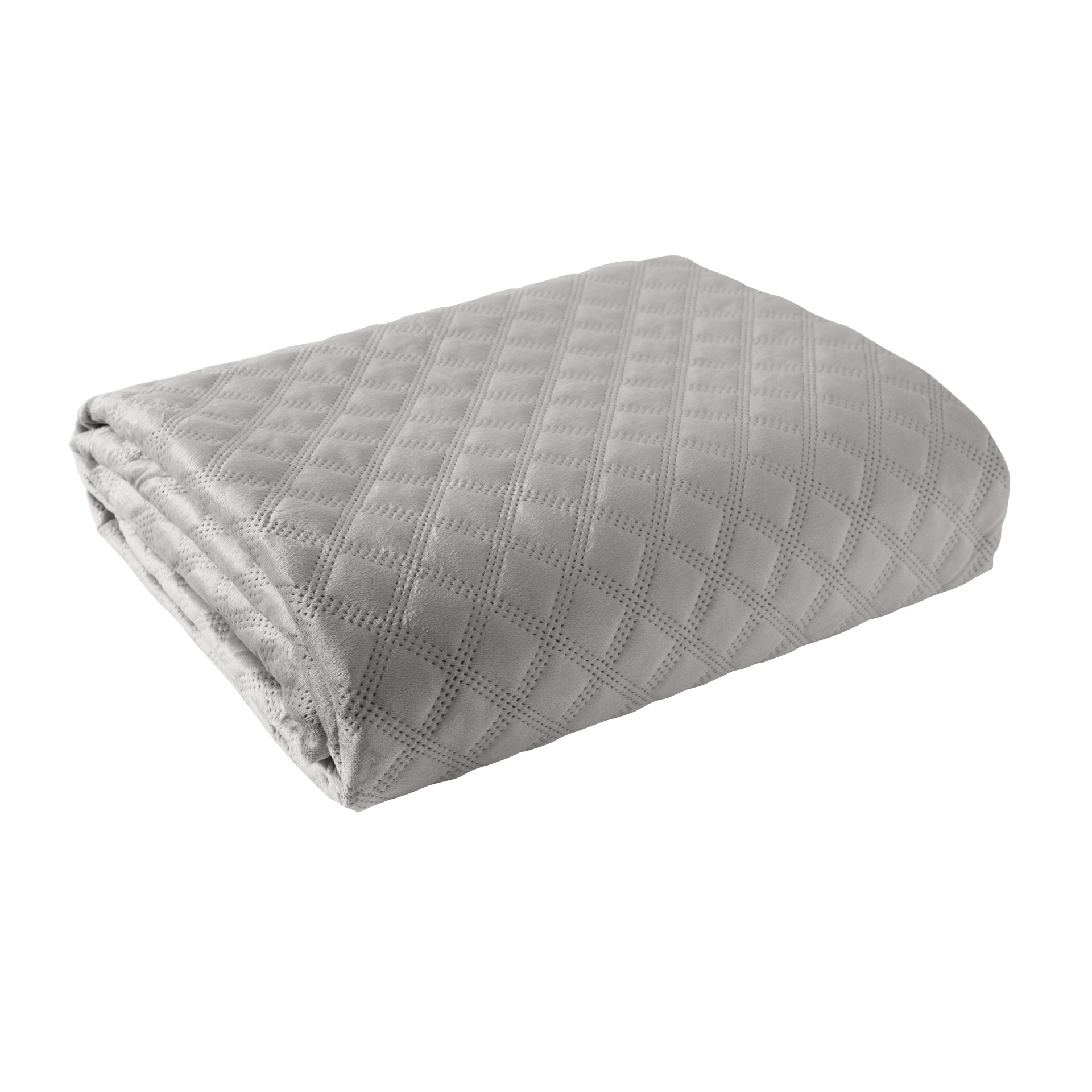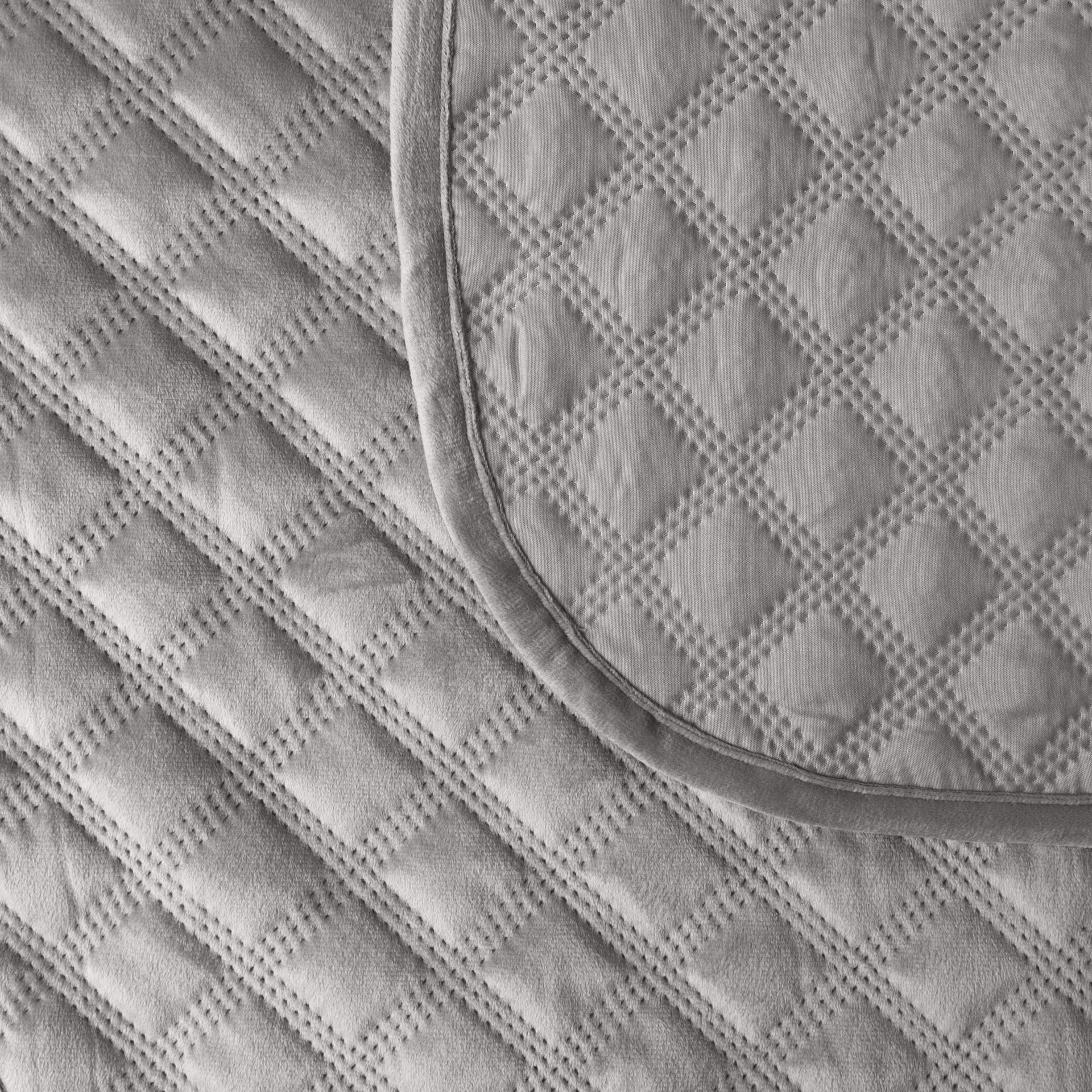 Dekoratiivne tepitud voodikate, geomeetrilise mustriga, valmistatud kuumpressimise tehnikas.