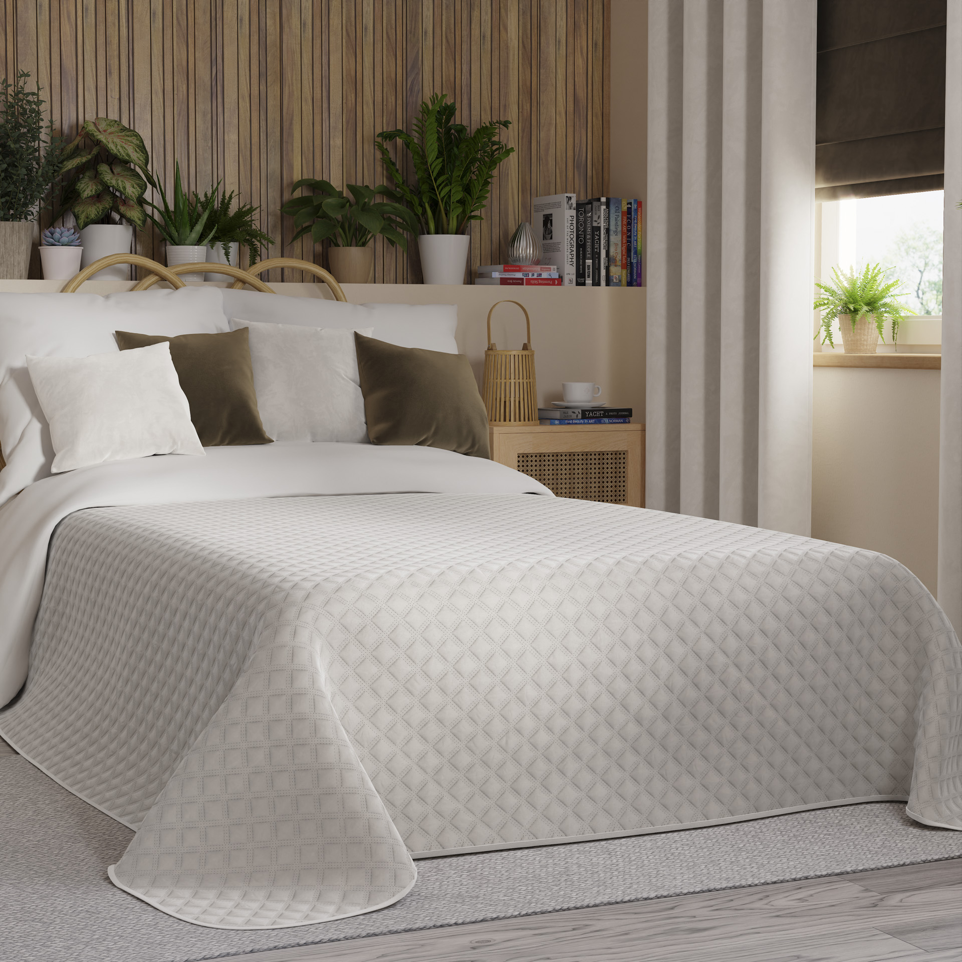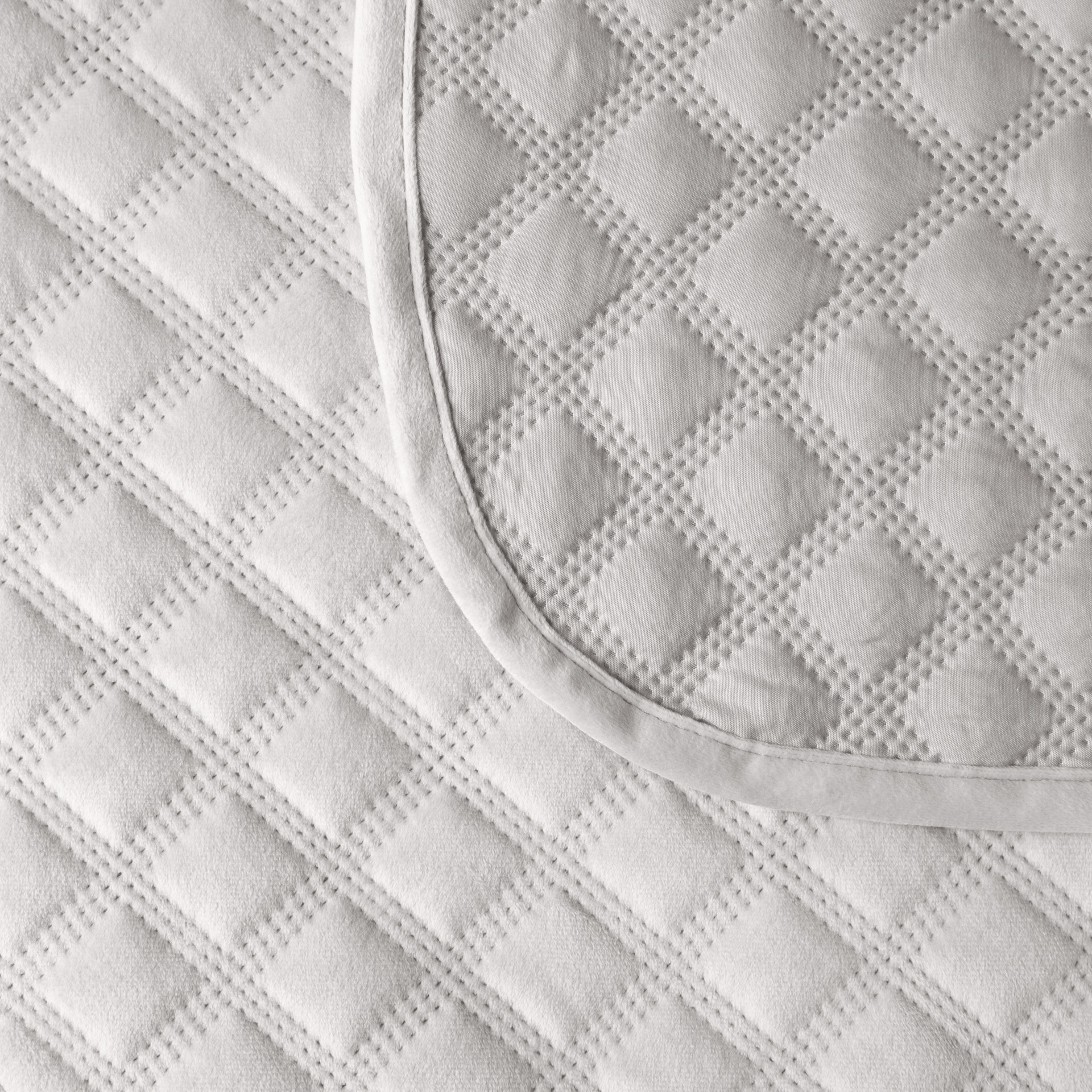 Dekoratiivne tepitud voodikate, geomeetrilise mustriga, valmistatud kuumpressimise tehnikas.