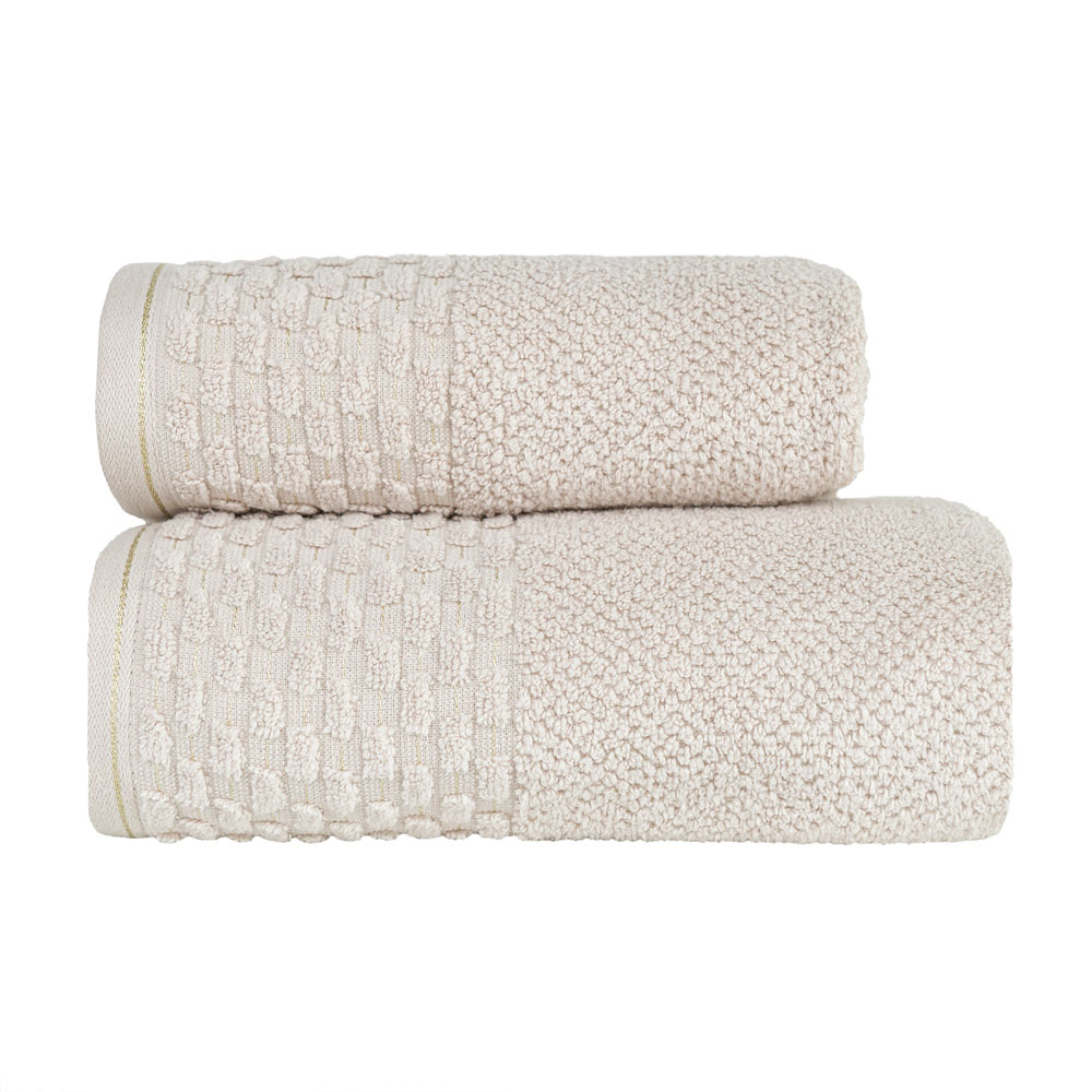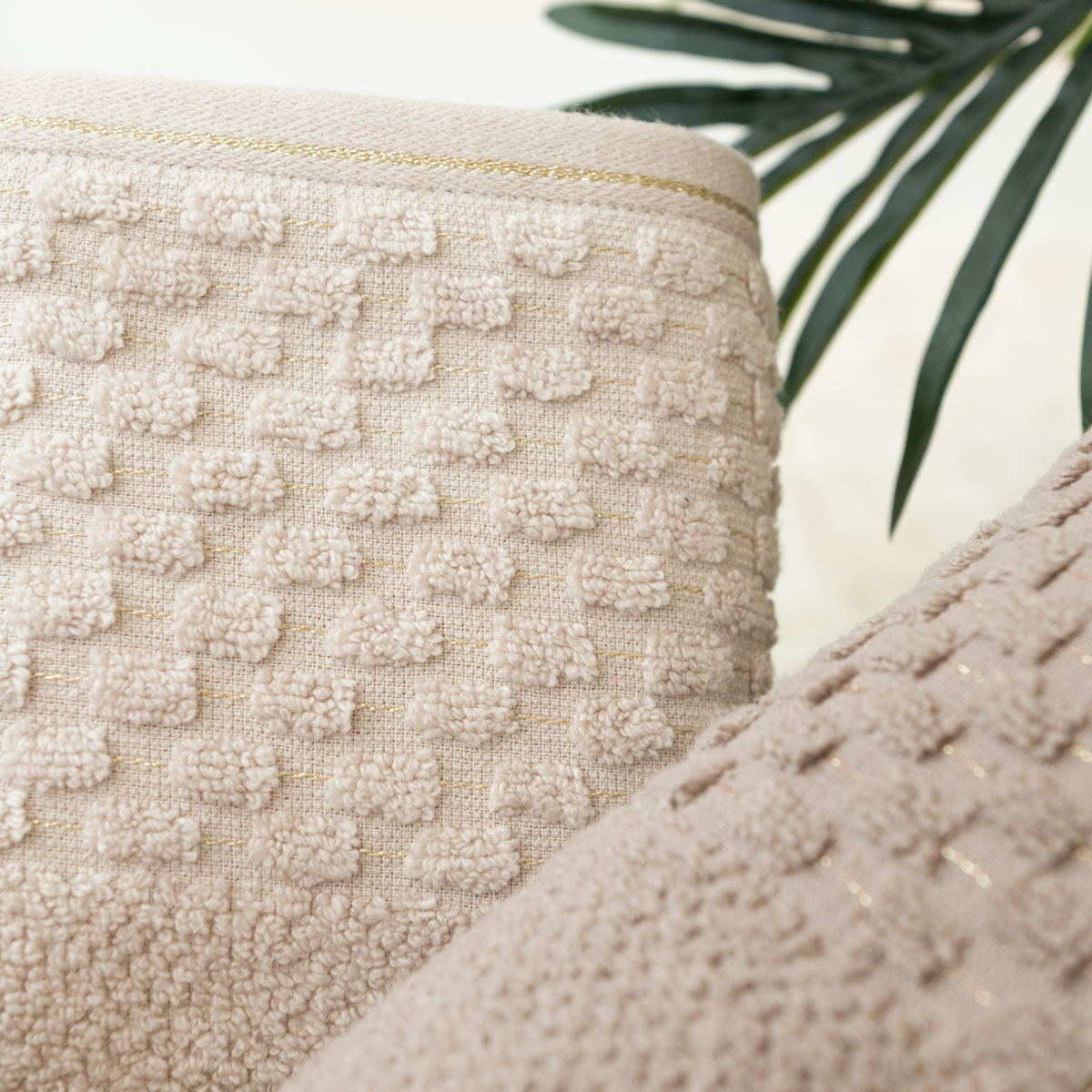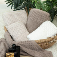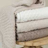 Pehme rätik, mille ühte serva ehib kaunis muster.